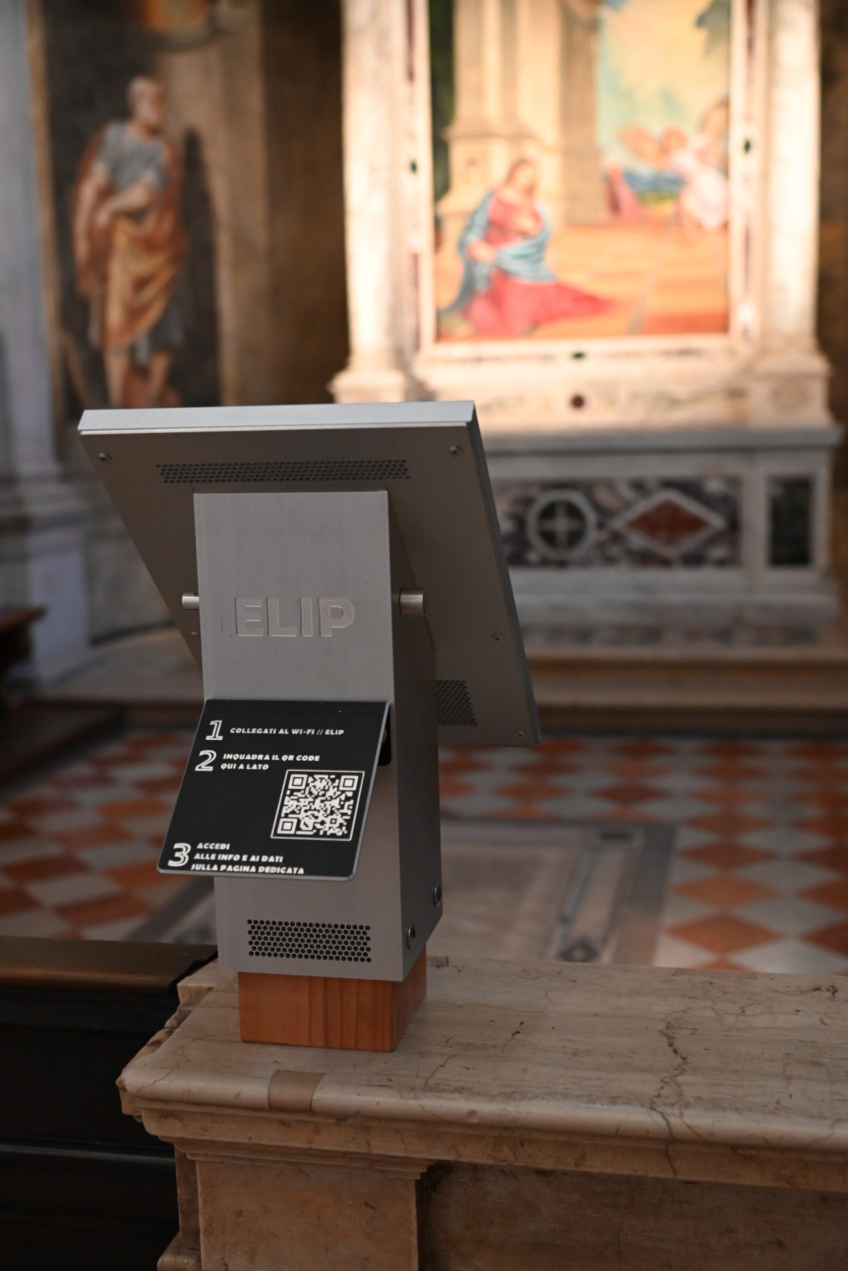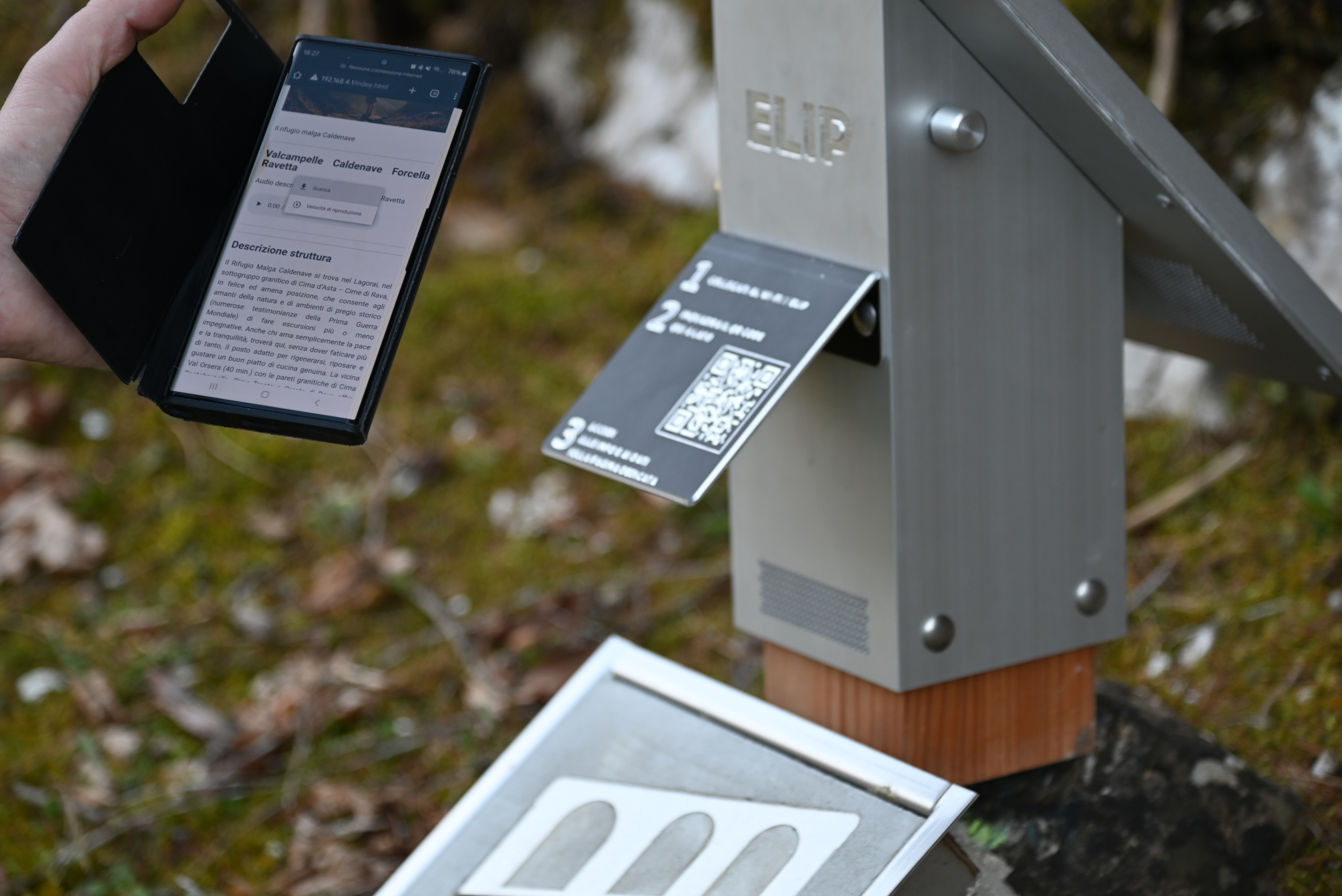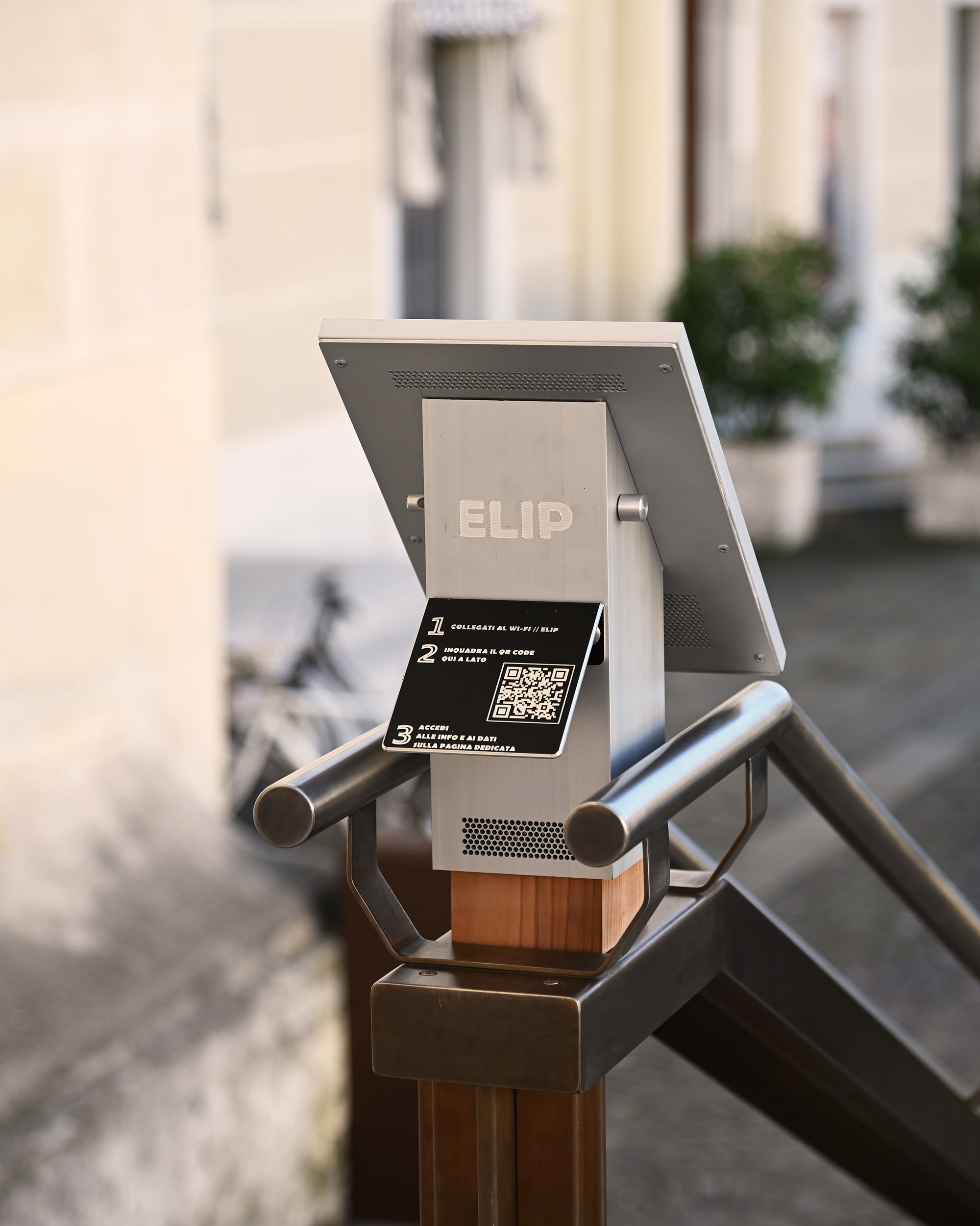 ELIP è un dispositivo informativo autonomo – un “local wi-fi info point” – ideato per condividere contenuti digitali direttamente sul dispositivo mobile del visitatore (smartphone, tablet, etc.), in modalità “offline”, semplicemente attivando il “wi-fi” del dispositivo e inquadrando il QR-Code. È un dispositivo green, smart e friendly.
